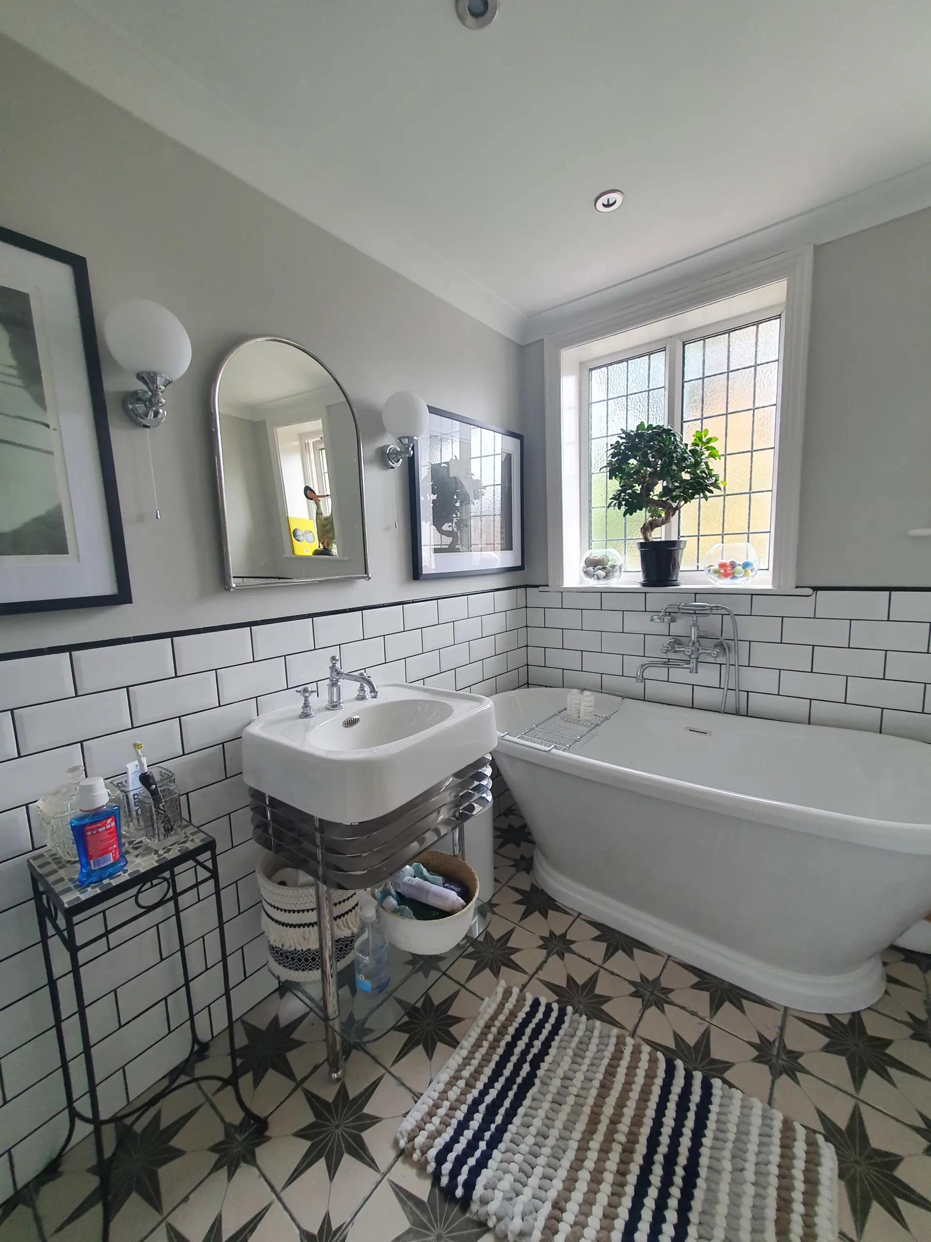 The bathroom suite is comprised of Arcade from Burlington, pulled together with some incredibly sophisticated Black Star flooring and White Metro Tiles.